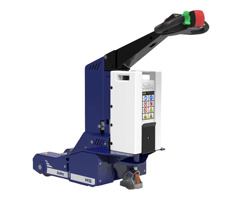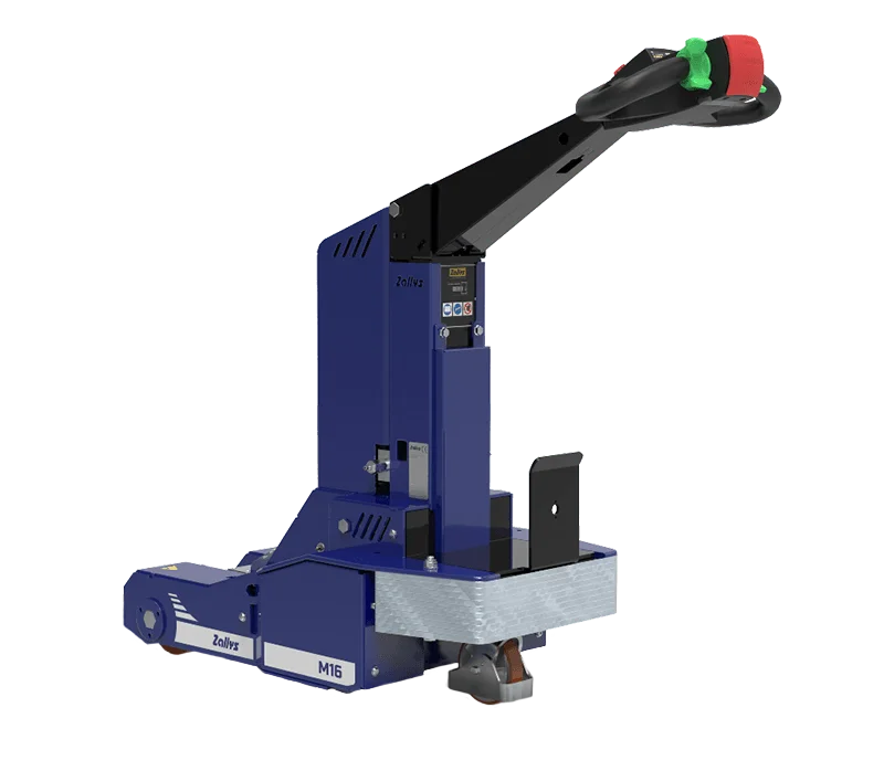 El M16 es un arrastrador eléctrico equipado con sistema de elevación hidráulico para el manejo de carros de 2 ruedas.